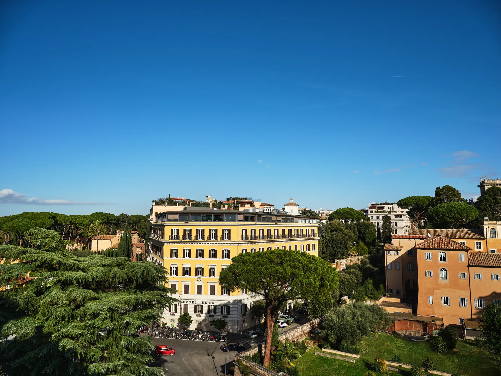 Rooftop dining includes Michelin-starred La Terrazza and relaxed Roman cuisine at Il Giardino, while The Eden Spa offers private treatment suites, a relaxation lounge and fitness studio.