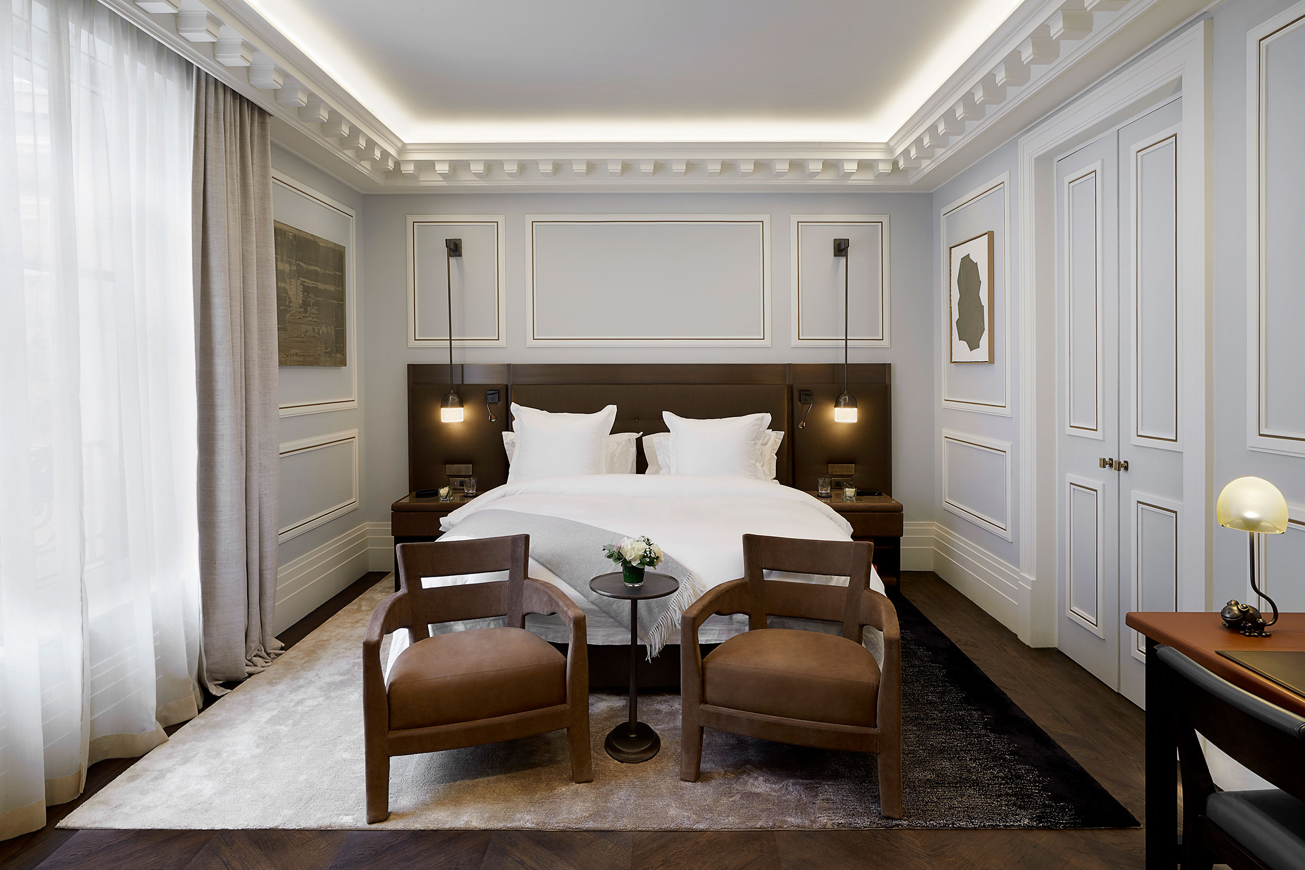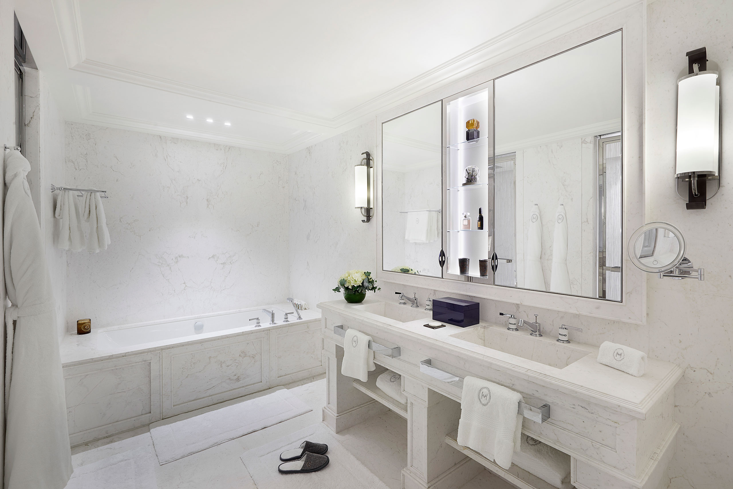 Located in the Parisian Golden Triangle at 33 rue Jean Goujon, Hôtel Particulier Villeroy embodies a unique 'Private Mansion' concept offering an experience of service, comfort and amenities with a dedicated team of butlers. The mansion offers 11 luxurious accommodations including two expansive apartments, as well as a restaurant and bar. The entire lower ground floor is reserved for the spa wellness and fitness facilities with access to the private heated terrace, providing sanctuary from the hustle and bustle of Avenue Montaigne.