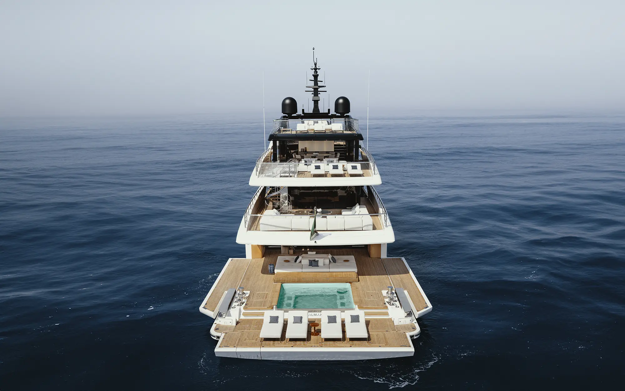 • Spacious Master Suite spanning three levels, connecting to a private foredeck pool—an innovation rarely seen on a yacht of her size