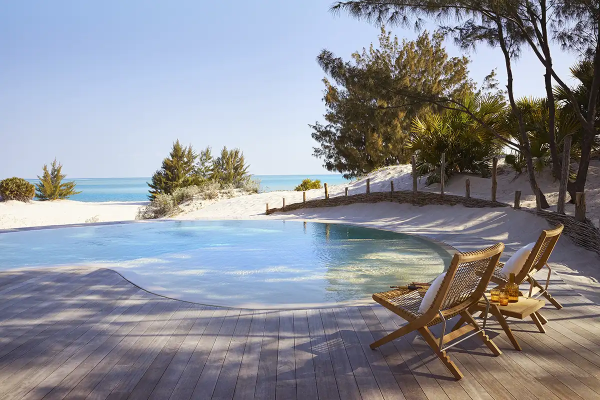 Kisawa is a 300-hectare sanctuary of coastal forest, beach and sand dunes, located on the southern tip of Benguerra Island. Situated across 5km of pristine coastline, the property rests within the remote Bazaruto Archipelago, part of the richly biodiverse Bazaruto National Marine Park. The nearest airport is Vilankulos (VNX) before a short and cinematic helicopter transfer to the Kisawa helipad.